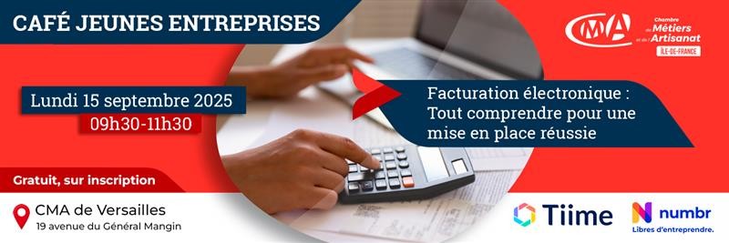 Le thème de cette édition : «Facturation électronique, tout comprendre pour une mise en place réussie », sera animé nos partenaires Tiime et Numbr.
